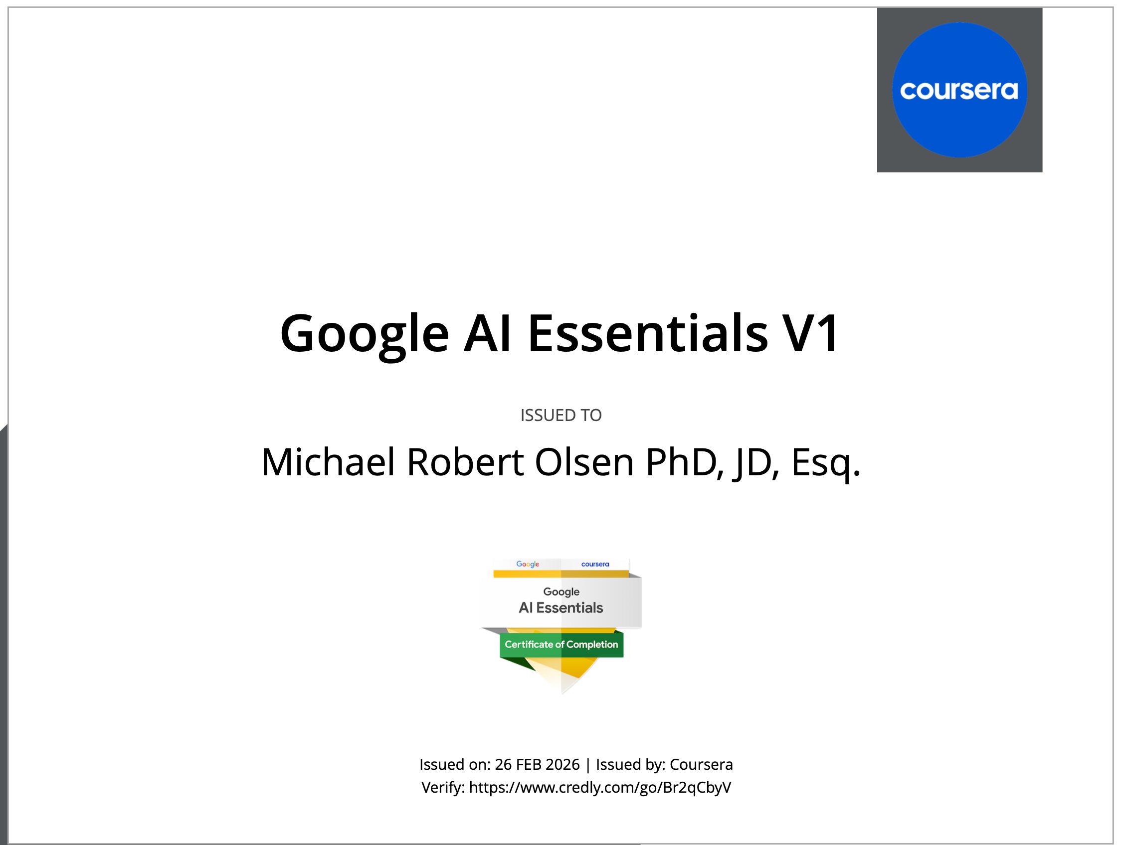 Sheila Eileen Olsen PhD-OL, PhD-EL, PhD-BA, DBA and Michael Robert Olsen PhD-BA, DBA, JD, Esq.